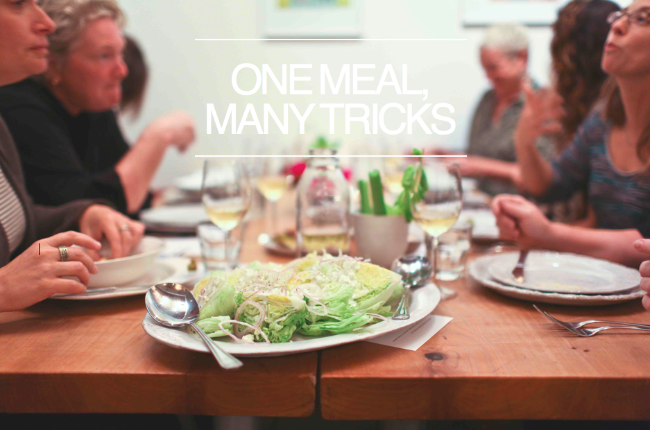 Each course covers a different set of cooking fundamentals. Whereas in a traditional course you'd spend days, if not weeks, on sauces, we'll cover a sauce when it's appropriate - for example, after sautéing meat, when drippings coat the pan. We invite you to take a single class that covers topics most relevant or interesting for you; or, for a more comprehensive culinary training, please join us for several of these classes over the course of the year. We will be offering One Meal Many Tricks on a regular basis, and will take you through the seasons and around the kitchen by the end of the year.