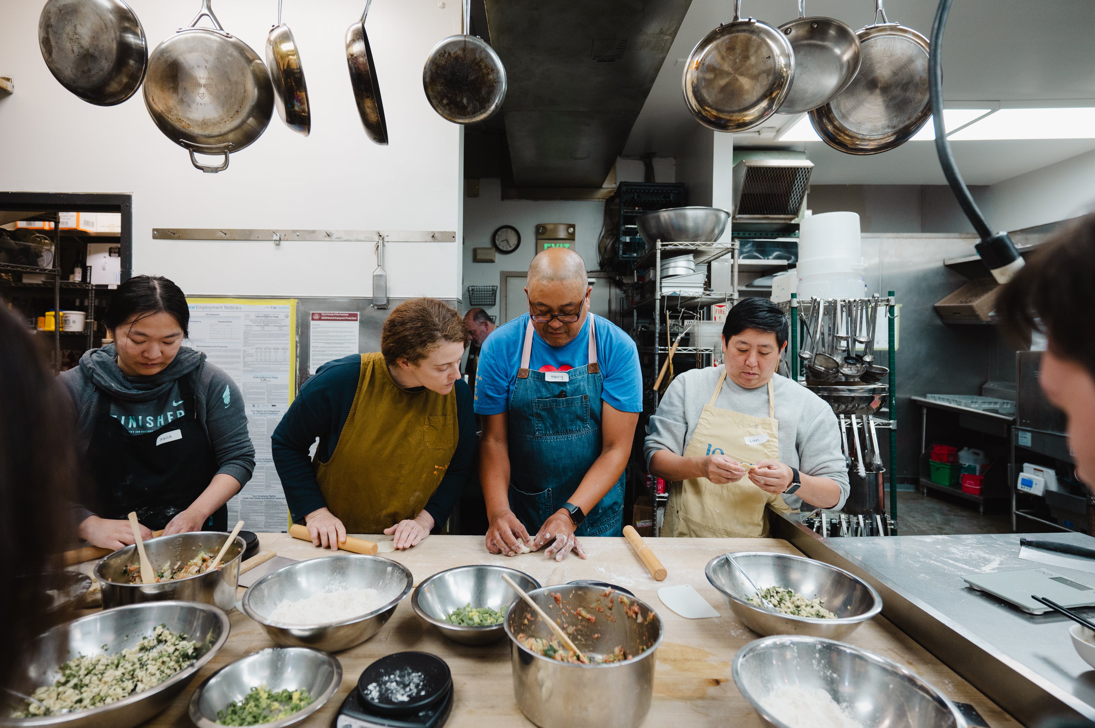 At our 18th Street Kitchen in San Francisco, paid classes reach curious home cooks with the means to pay for instruction. Here we host hands-on cooking classes, baking workshops, tasting seminars and food-focused events. Our diverse chefs lift up home cooking traditions from around the world, and inspire students of all skill levels with confidence and creativity in the kitchen.Â